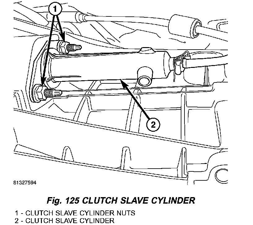 8. Install clutch slave cylinder (2) (Fig. 125) and mounting nuts (1).