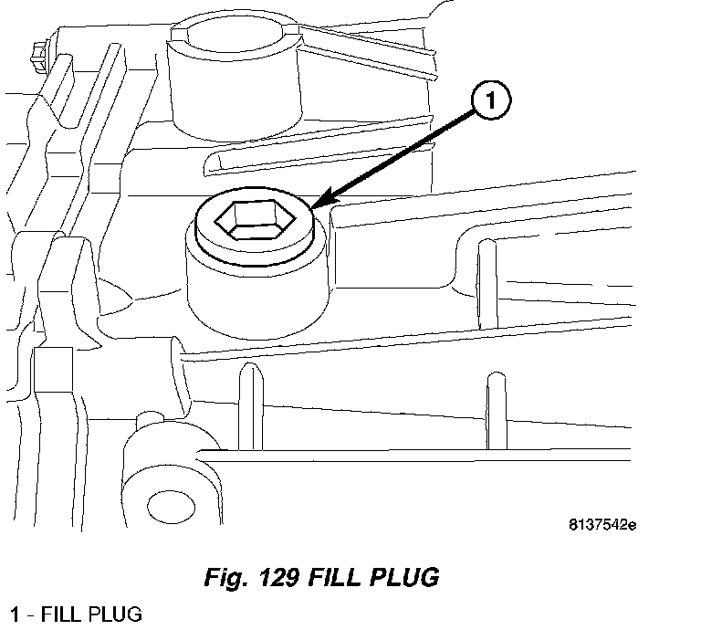 15. Remove fill plug (1) (Fig. 129) and fill transmission within lubricant.