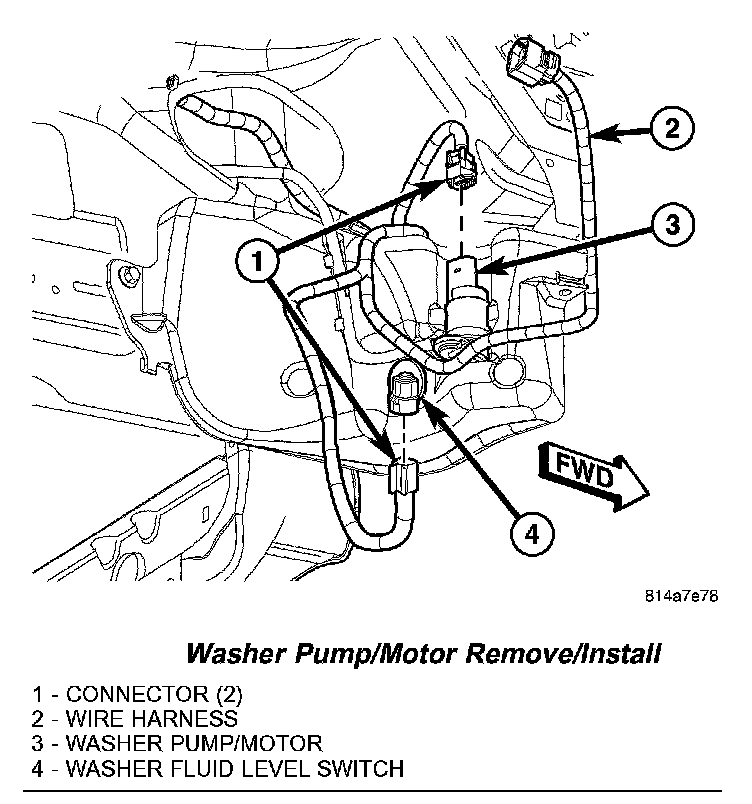 REMOVALNOTE: The washer pump/motor can be removed from the washer reservoir without removing the reservoir from the vehicle.