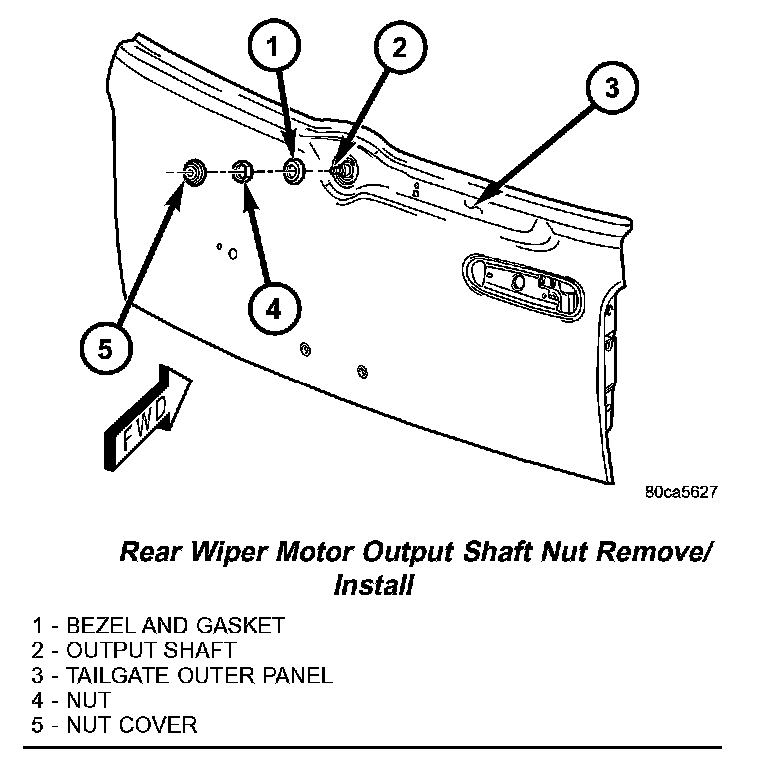 5. Remove the bezel and gasket from the rear wiper motor output shaft.