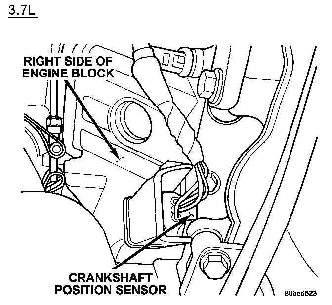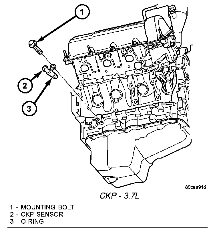 The crankshaft position sensor (CKP) is mounted in to the right rear side of the cylinder block.