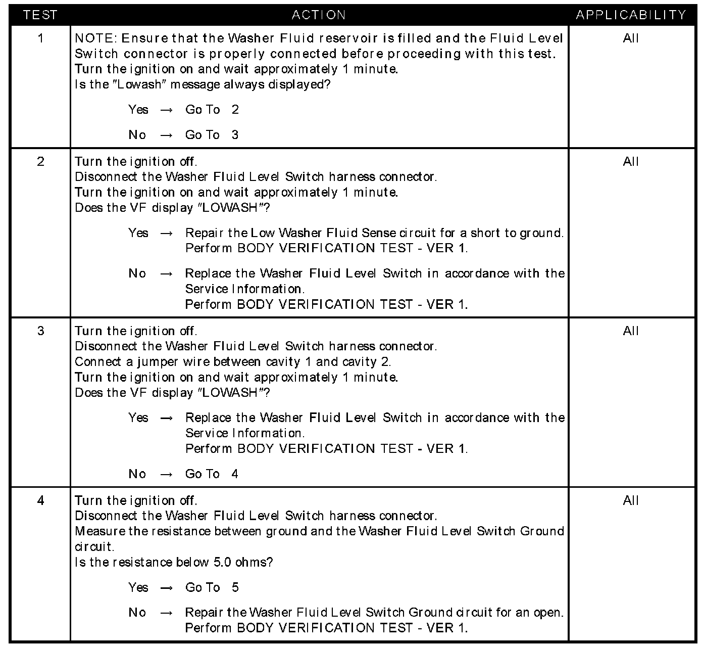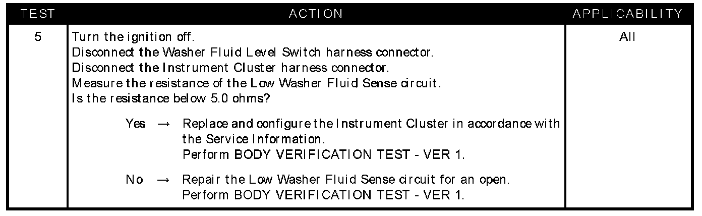 - Washer fluid level switch ground circuit open