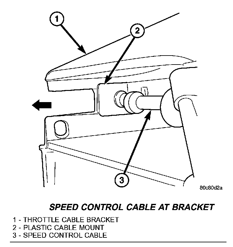 6. Slide speed control cable plastic mount towards right of vehicle to remove cable from throttle body bracket.