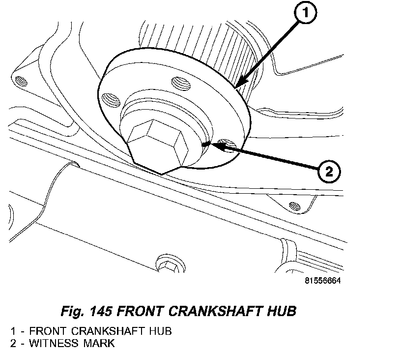 3. Rotate engine by hand until the witness mark in the front crankshaft hub reaches the 3 O'clock position (Fig. 145).