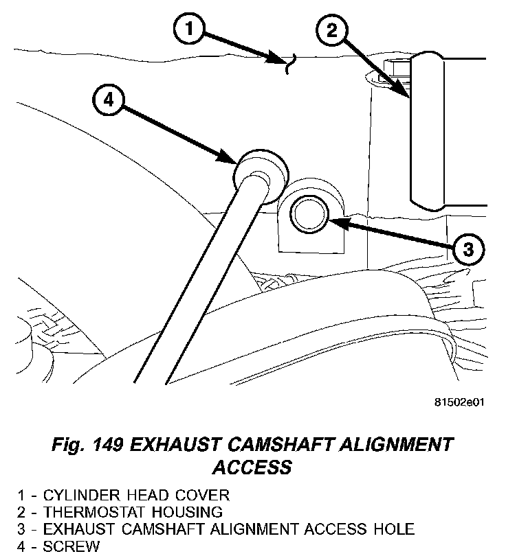 11. Remove the exhaust camshaft access plug in cylinder head cover/intake manifold (Fig. 149).