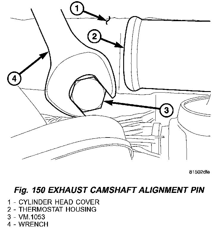 12. Insert VM.1053 to lock exhaust camshaft in position (Fig. 150).