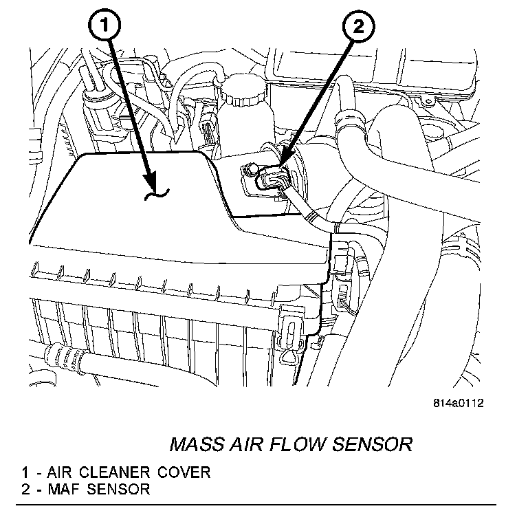 The Mass Air Flow (MAF) Sensor is located on the air cleaner cover. The MAF sensor uses semiconductor technology throughout, and is used to calculate the air mass flowing past it per time unit. This mass is important for determining the exhaust gas recirculation rate. The MAF sensor sends a corresponding signal to the ECM, which evaluates the signal to adjust the EGR air flow control valve.