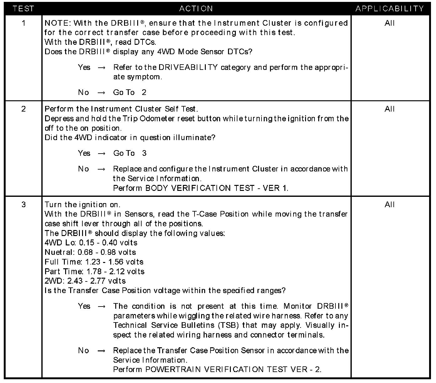 4WD INDICATOR INACCURATE - DIESEL ONLY