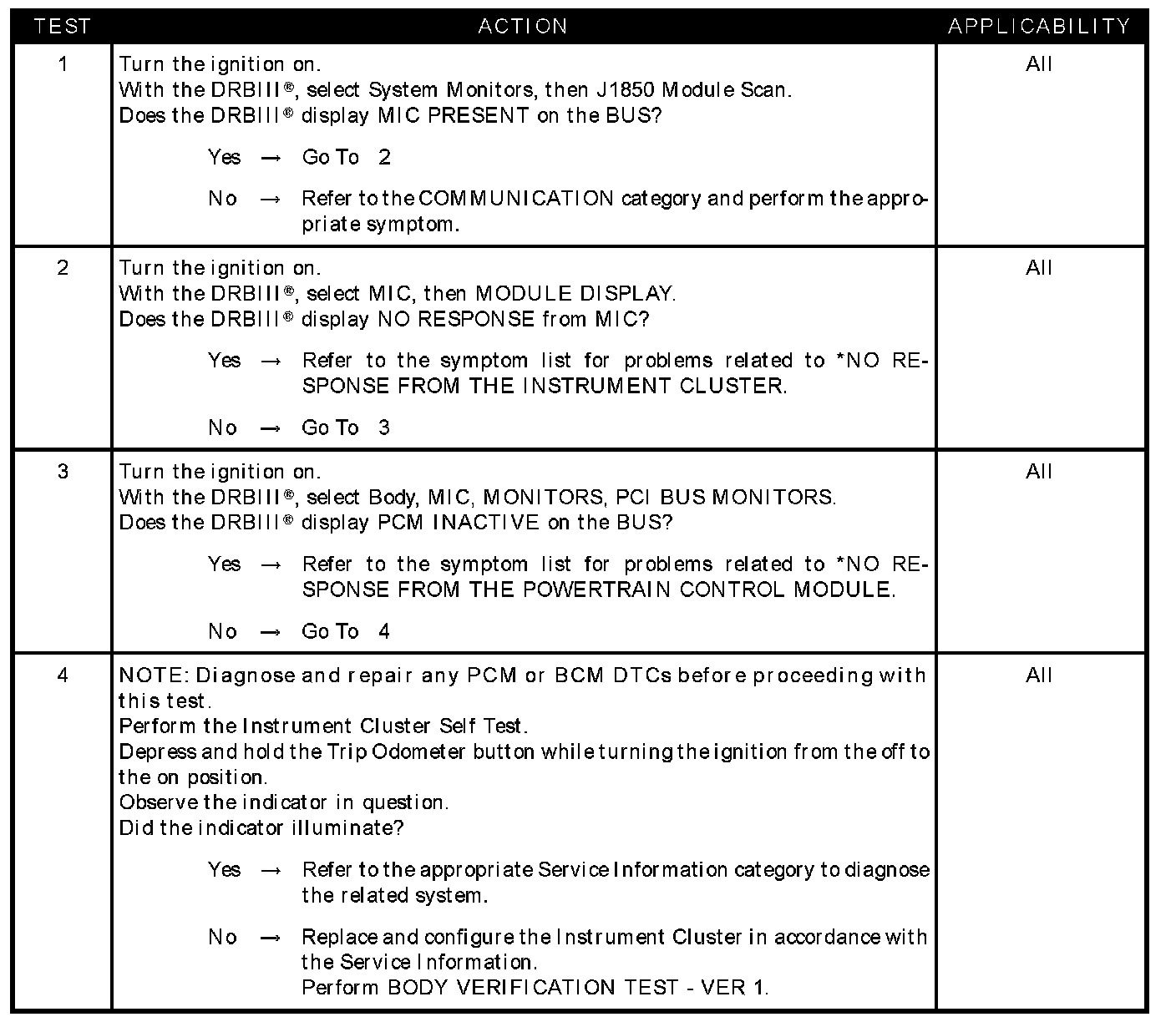 - No response - instrument cluster
