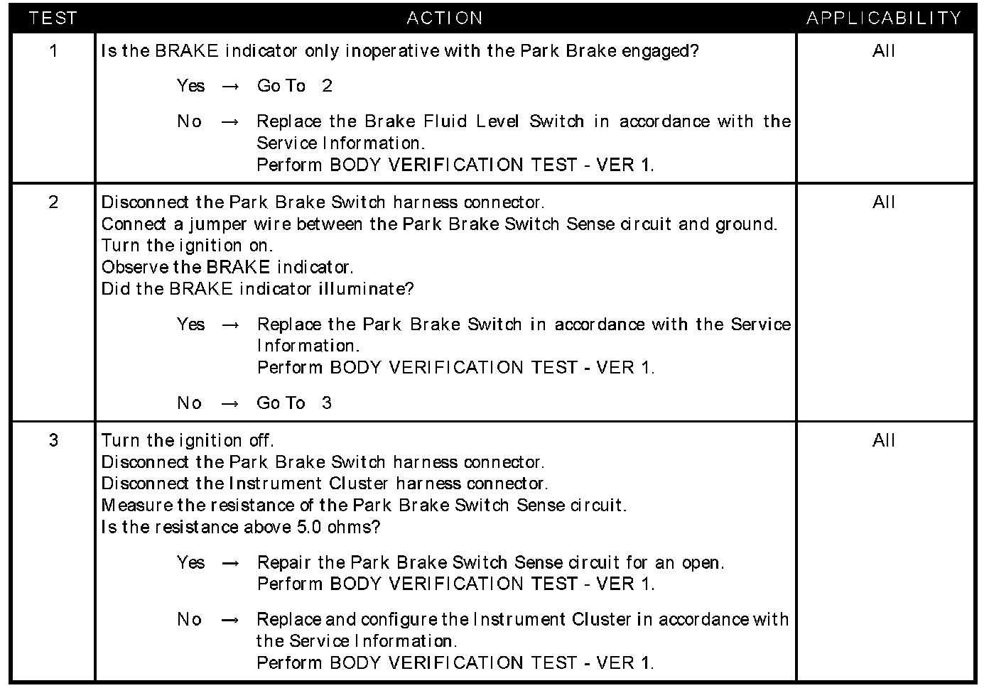 BRAKE INDICATOR INOPERATIVE