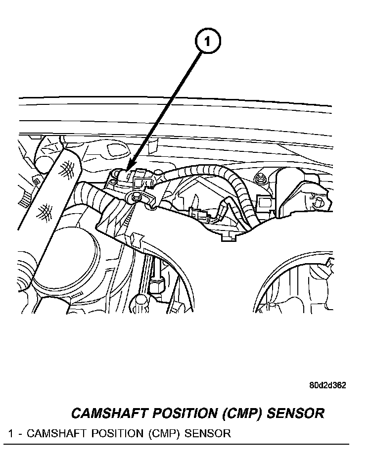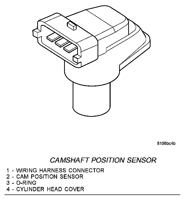 The camshaft position sensor is mounted on the cylinder head cover toward the rear of the engine. The camshaft sensor utilizes a non contact method on one segment of the camshaft to record the camshaft position. When the ECM receives the signal from this sensor, it can then detect TDC of cylinder number one. The signal from the camshaft sensor is only required during engine starting. Injection timing is synchronized by means of the camshaft signal and the crankshaft signal.