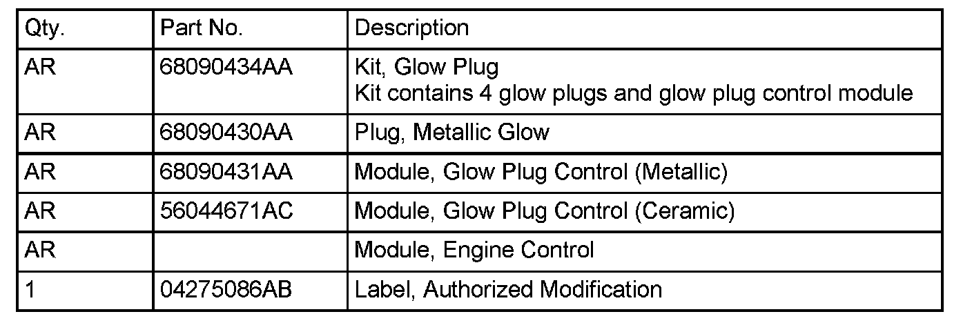 When replacing a ceramic glow plug with a metallic glow plug it will be necessary to replace all four glow plugs, replace the glow plug control module (GCM) and reprogram the Engine Control Module. All changes must be done at once.