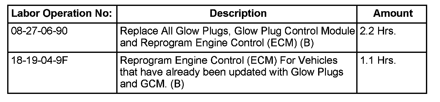 It is only necessary to replace all glow plugs, the GCM and reprogram the ECU one time. If any of these components require replacement after the initial change then only that component needs to be replaced.