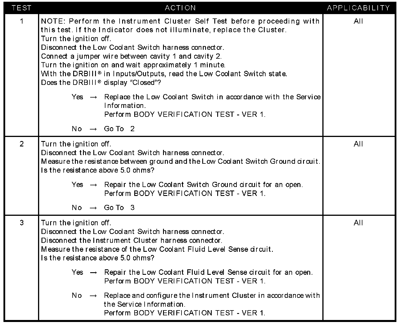 SYMPTOM LOW COOLANT INDICATOR INOPERATIVE - DIESEL ONLY