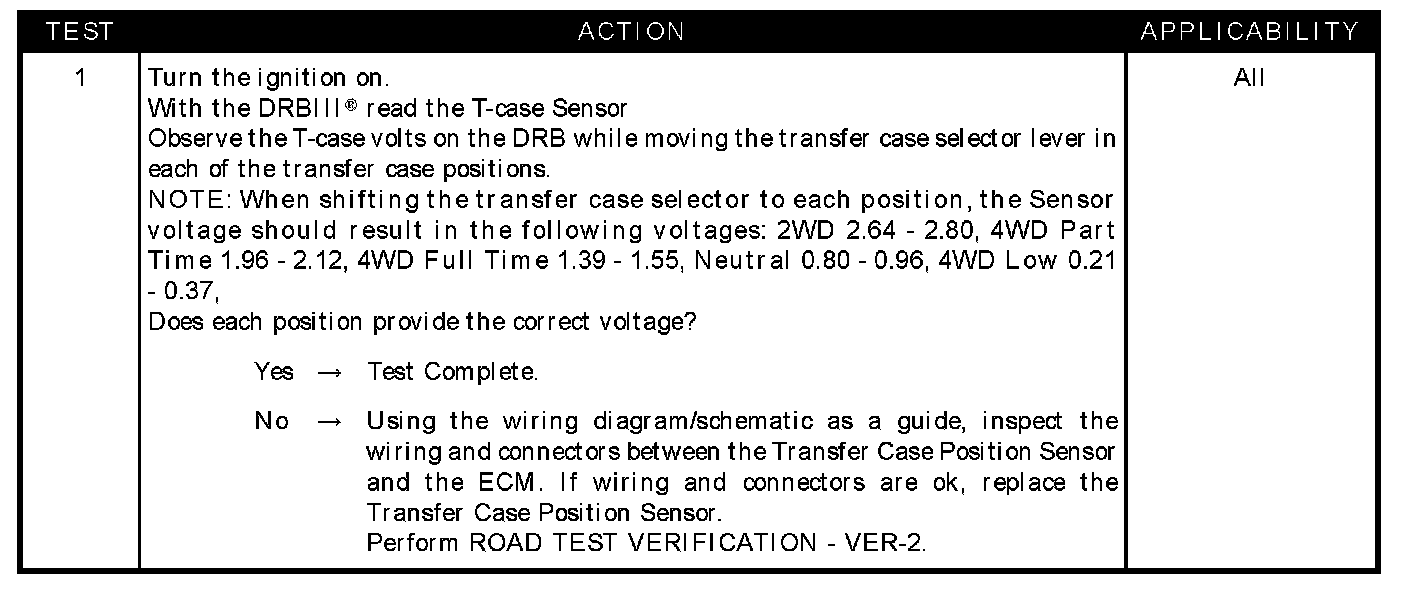 Checking the Transfer Case Position Sensor