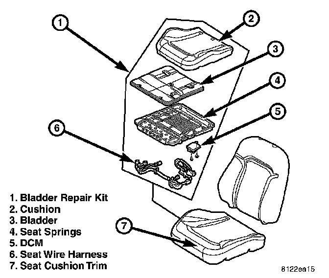 There are only three replaceable components in the OCS, Occupant Classification Module, Bladder Repair Kit and the Passenger Airbag OFF Indicator. The Bladder repair kit contains the OCS bladder; wire harnesses, pressure sensor (Seat Weight Sensor), module, seat cushion and other relate structural and sound deadening components. The module and sensor connector have a Tamper evident material installed on the service kit module and sensor connectors. This material provides visible evidence that the assembly has been separated after the calibration process was completed. Do not install a Bladder Repair Kit if it appears that any of the components have been disconnected