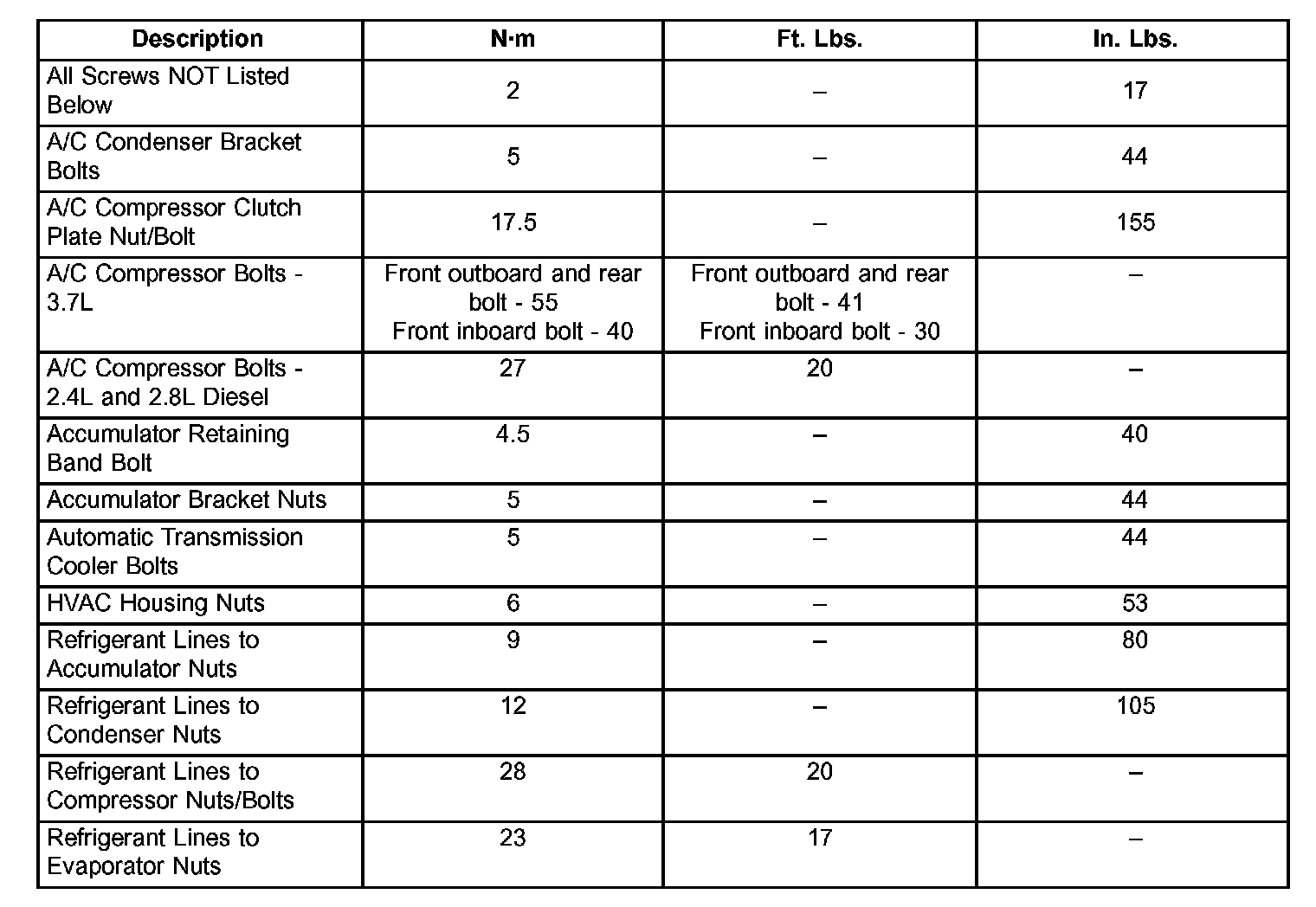 Fastener Torque: