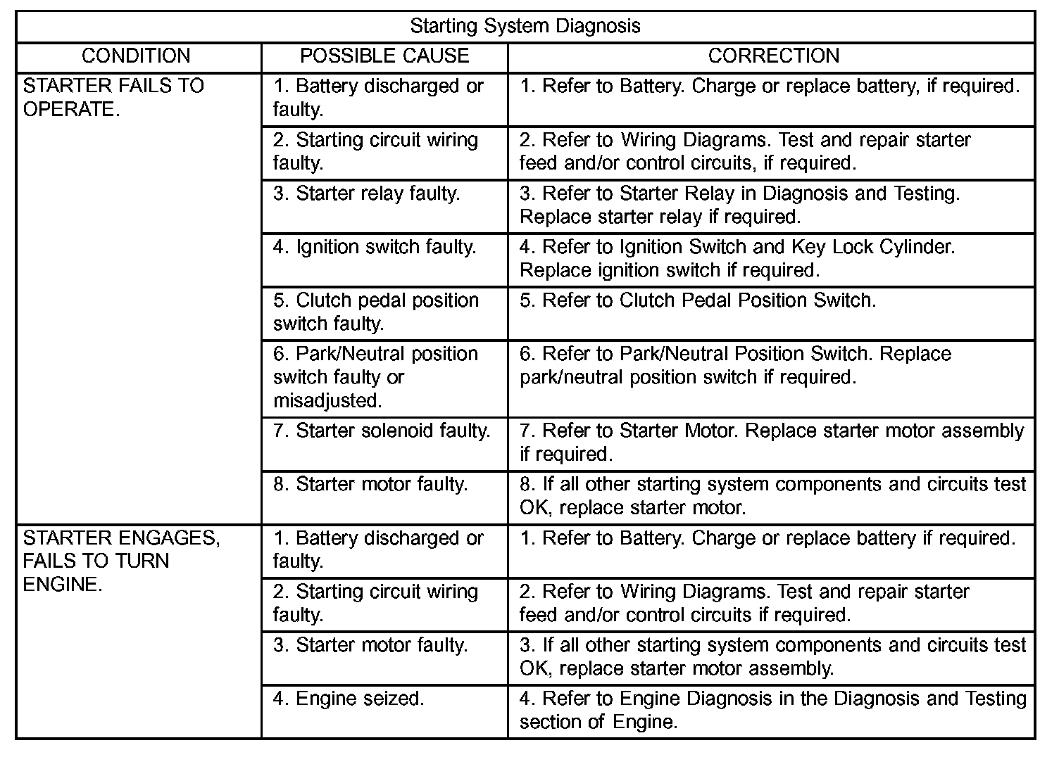The following starting system components should be carefully inspected whenever any starting system problem is encountered.
