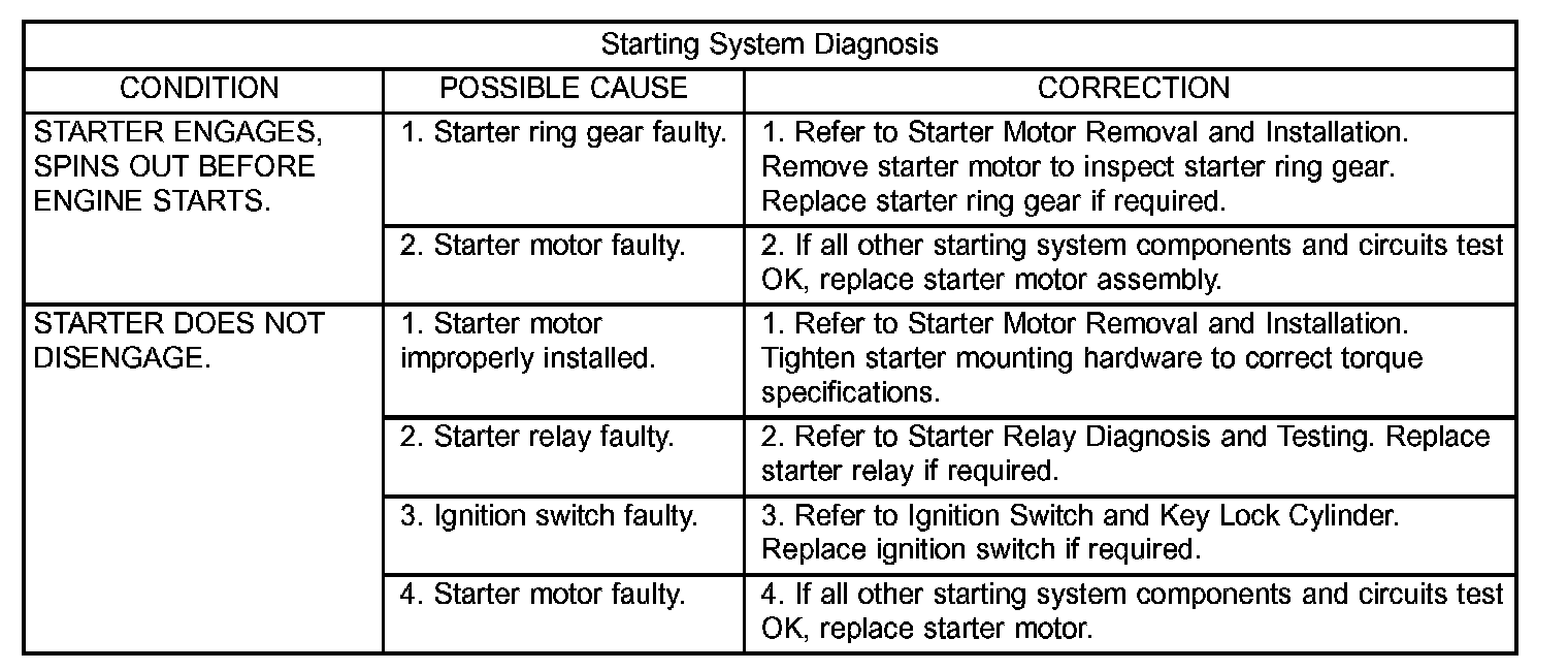 - Visually inspect starting system wire harnesses for indications of physical damage. Repair or replace any faulty wiring, as required. Refer to Wiring Diagrams for repair or connector and terminal service procedures.