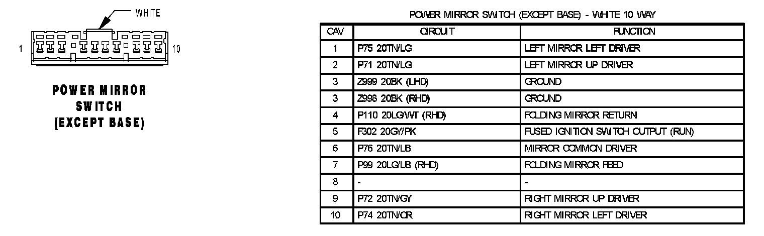 Power Mirror Switch (Except Base):