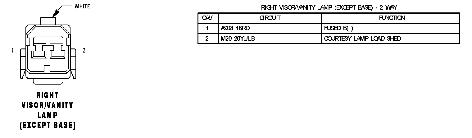 Right Visor/Vanity Lamp (Except Base):