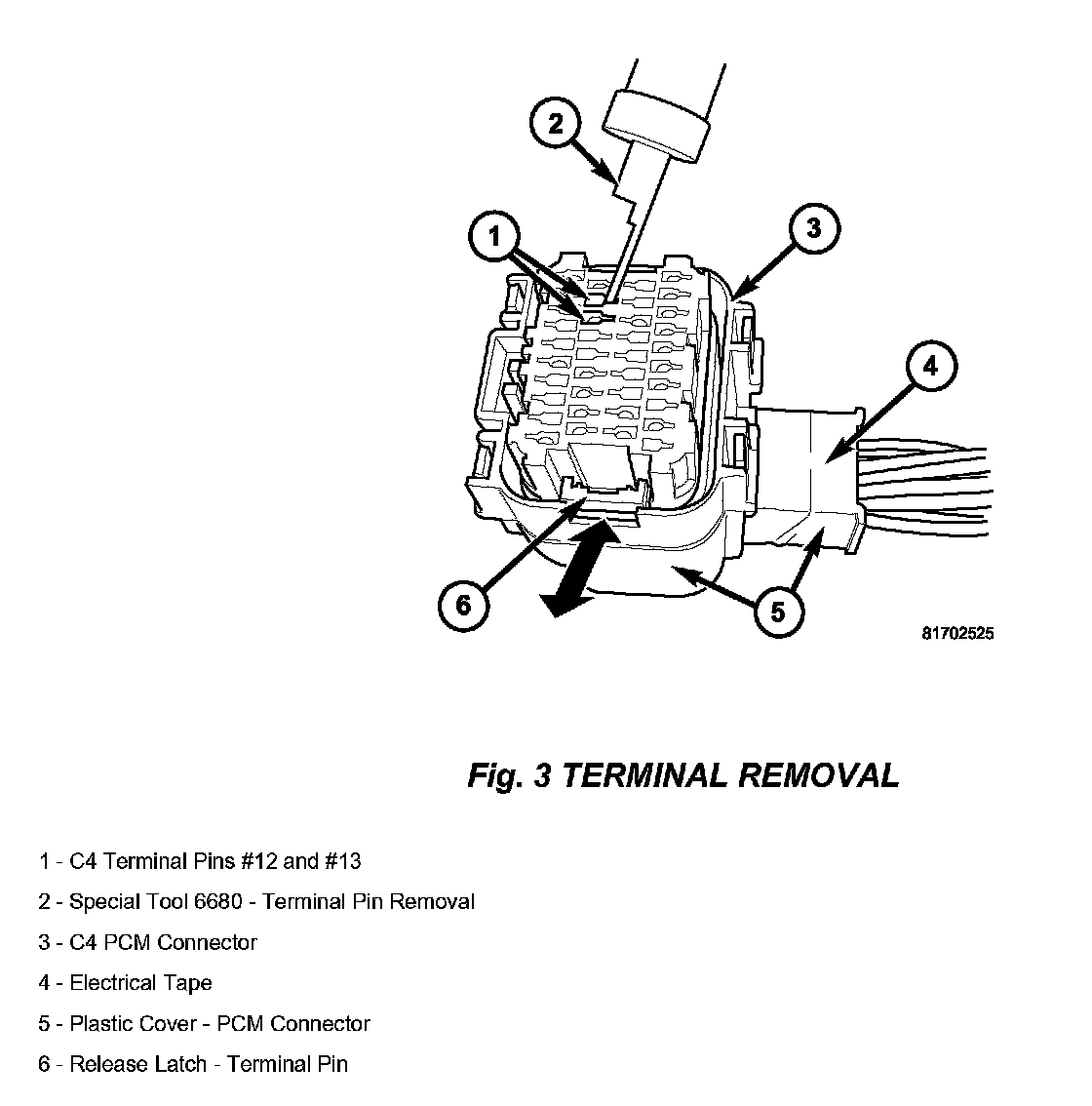 6. Release the red latch on the C4 connector used to secure the connector wire terminals (Fig. 3).