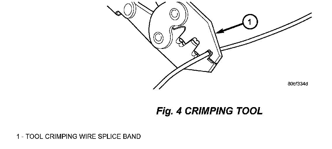 7. Repairing one wire at a time, cut and trim the wire ends on the new C4 connector wire and on the original harness wire. Slide the heat shrink wrap sleeve onto the wire. Using a splice band and crimping tool splice the wire ends together. Solder the splice. Using a heat gun position (center) the shrink wrap sleeve over the wire splice and apply heat to the shrink wrap sleeve. If necessary, refer to detailed splice procedures available on DealerCONNECT under the "Service Info" tab - 8-Electrical / Wiring Diagram Information / Wire / Standard Procedure / Wire Splicing (Fig. 4).