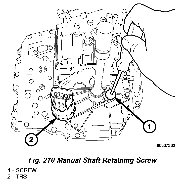 3. Remove manual shaft/TRS retaining screw (1) (Fig. 270).