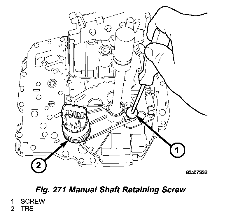 2. Install the TRS/manual shaft retaining screw (1) (Fig. 271) and tighten to 5 Nm (45 inch lbs.).