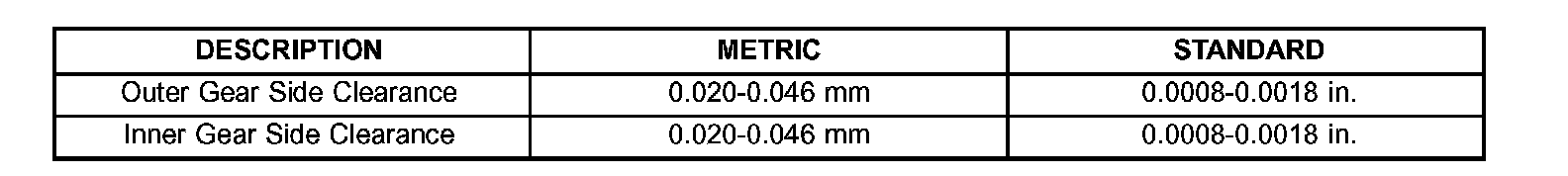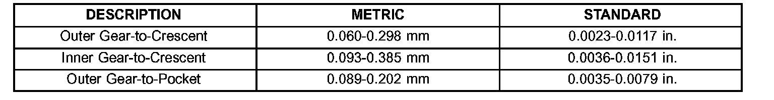 OIL PUMP CLEARANCES