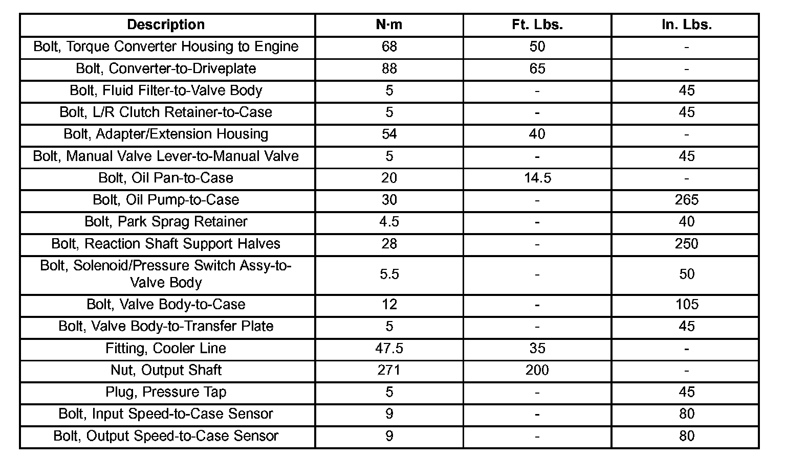 TORQUE SPECIFICATIONS