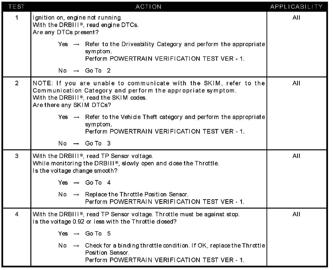 - TP sensor voltage greater than 0.92 volts with throttle closed