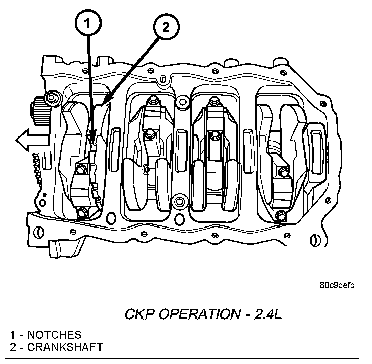 The Crankshaft Position (CKP) sensor is mounted into the right front side of the cylinder block. It is positioned and bolted into a machined hole.Engine speed and crankshaft position are provided through the CKP (Crankshaft Position) sensor. The sensor generates pulses that are the input sent to the Powertrain Control Module (PCM). The PCM interprets the sensor input to determine the crankshaft position. The PCM then uses this position, along with other inputs, to determine injector sequence and ignition timing.