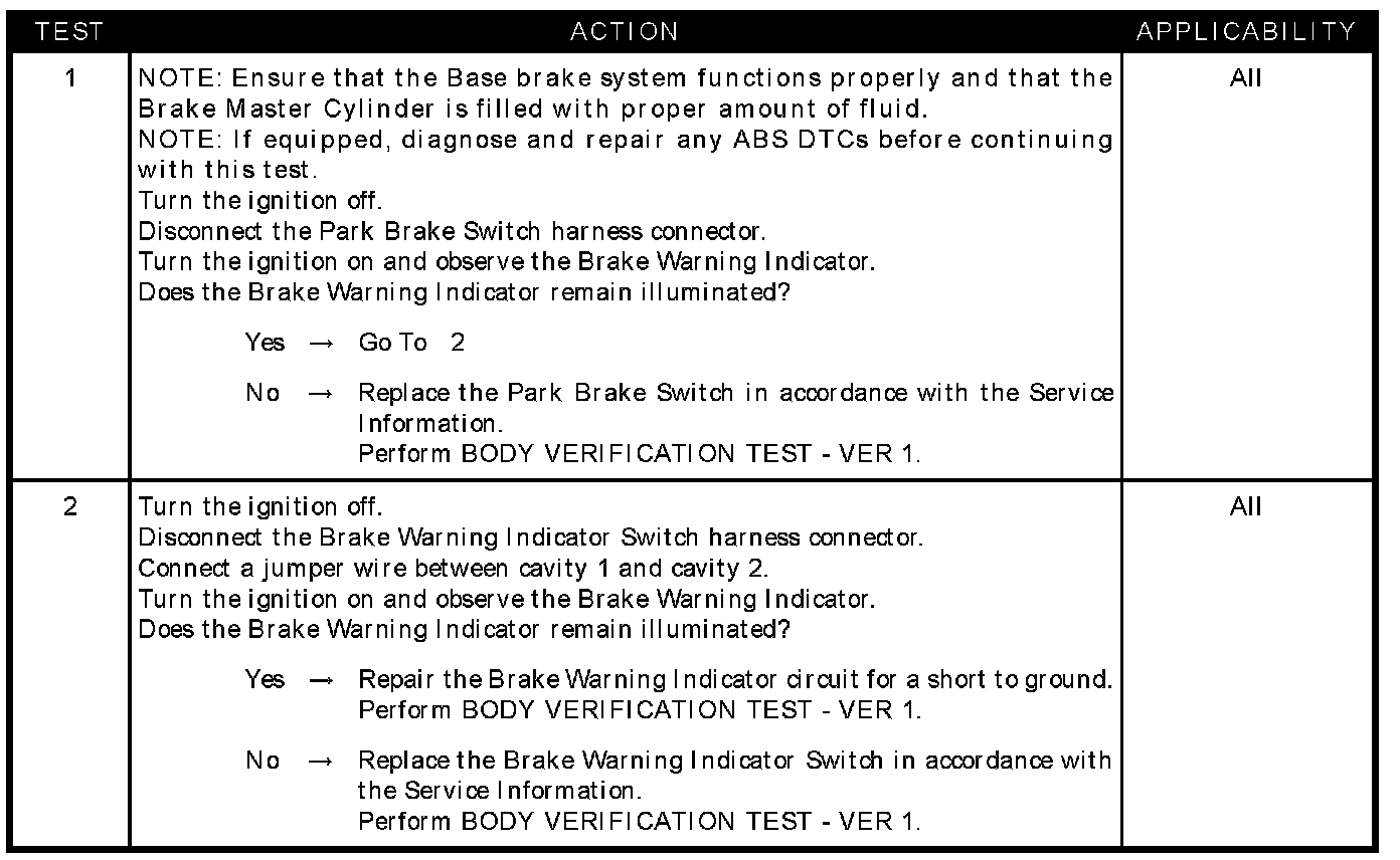 Brake warning indicator circuit short to ground