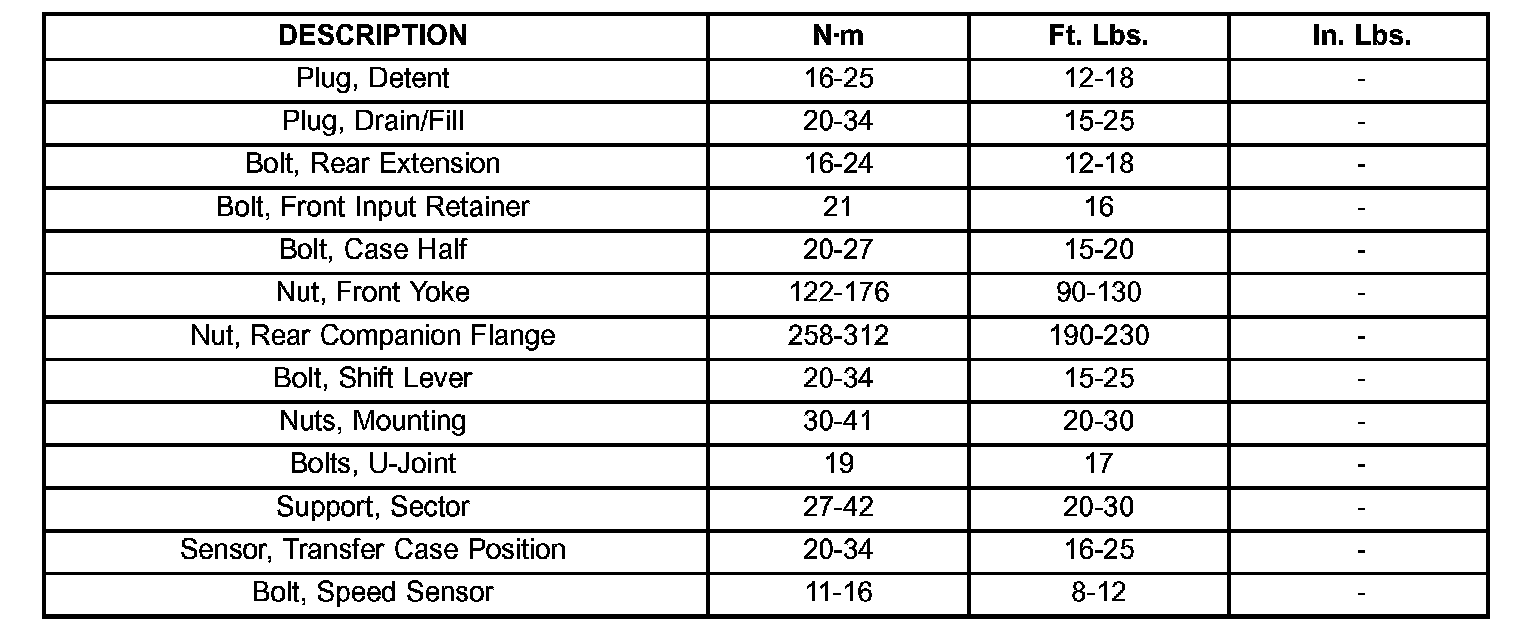 TORQUE SPECIFICATIONS