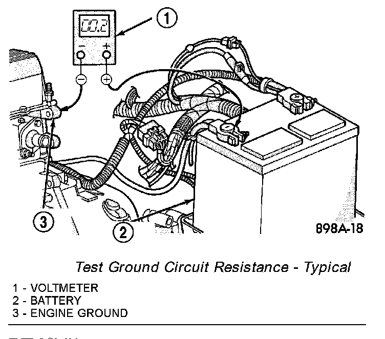A voltage drop test will determine if there is excessive resistance in the battery cable terminal connections or the battery cable. If excessive resistance is found in the battery cable connections, the connection point should be disassembled, cleaned of all corrosion or foreign material, then reassembled. Following reassembly, check the voltage drop for the battery cable connection and the battery cable again to confirm repair.
