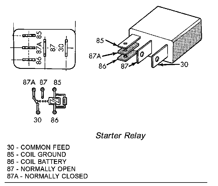 2. The relay normally closed terminal (87A) is connected to terminal 30 in de-energized position, but is not used for this application. Go to Step 3.