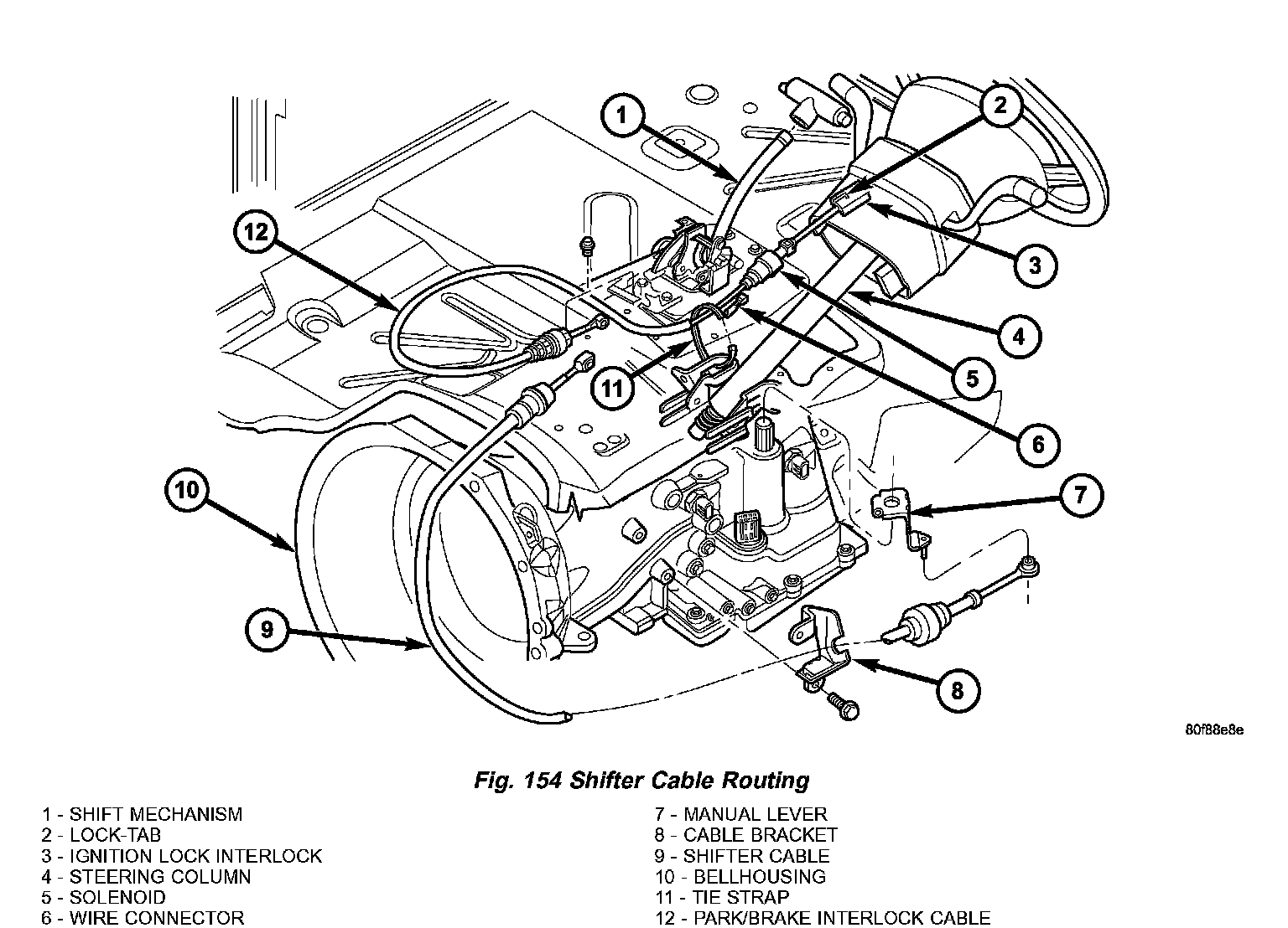 5. Disengage cable eyelet at transmission shift lever and removal cable from the mounting bracket. Then remove old cable from vehicle.
