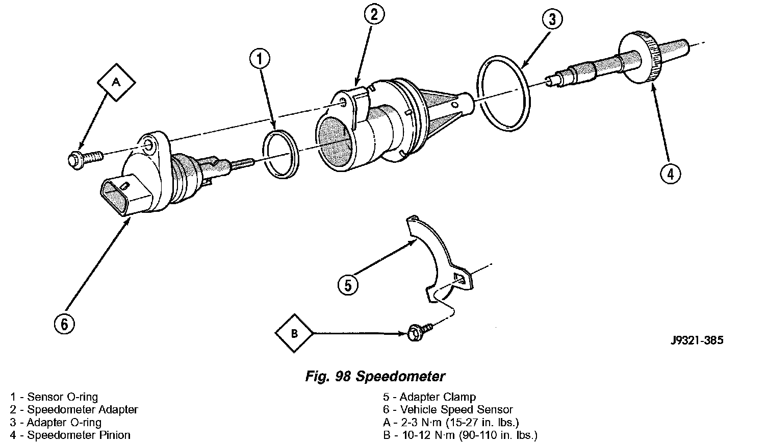 2. Install new O-rings on speed sensor and speedometer adapter (Fig. 98), if necessary.