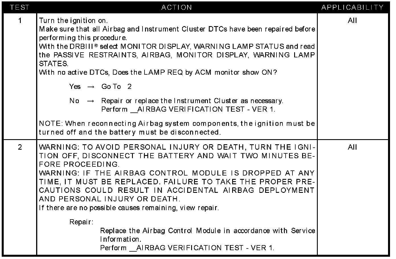 ACM, airbag indicator on without trouble codes