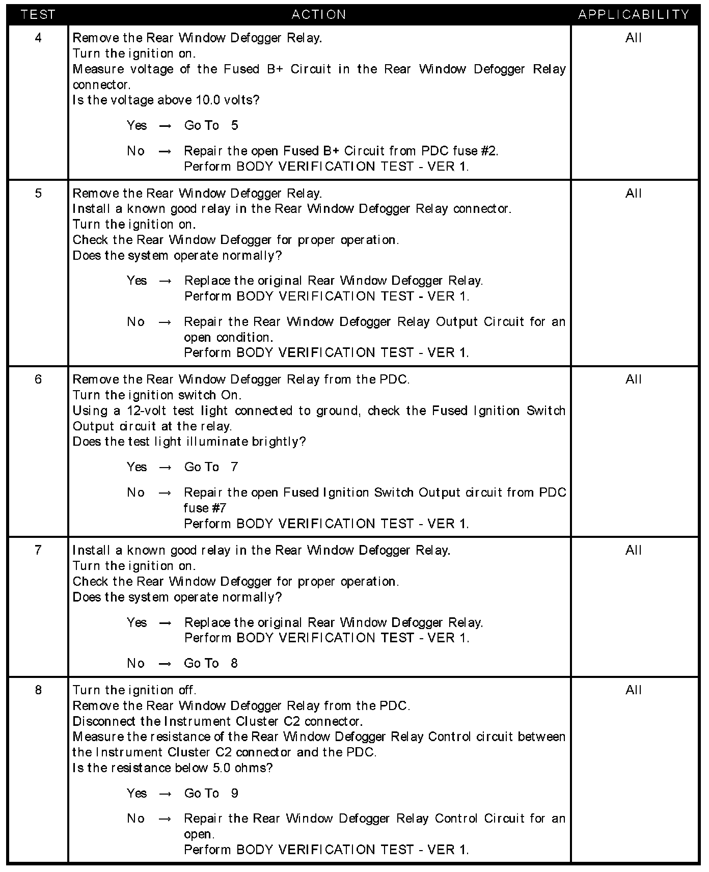 - Rear window defogger relay output open