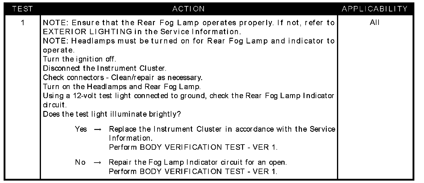 REAR FOG LAMP INDICATOR INOPERATIVE - BUX ONLY