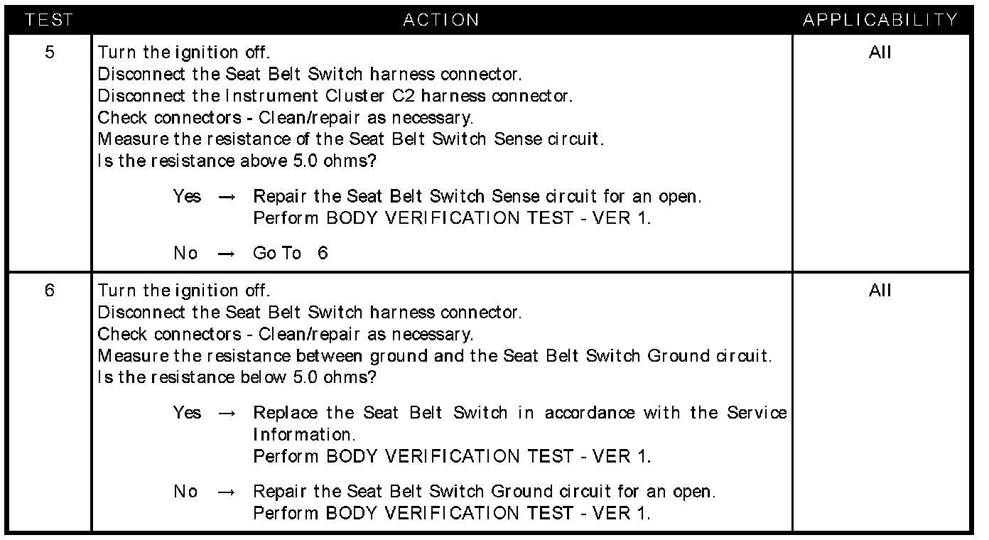SEAT BELT INDICATOR NOT OPERATING PROPERLY