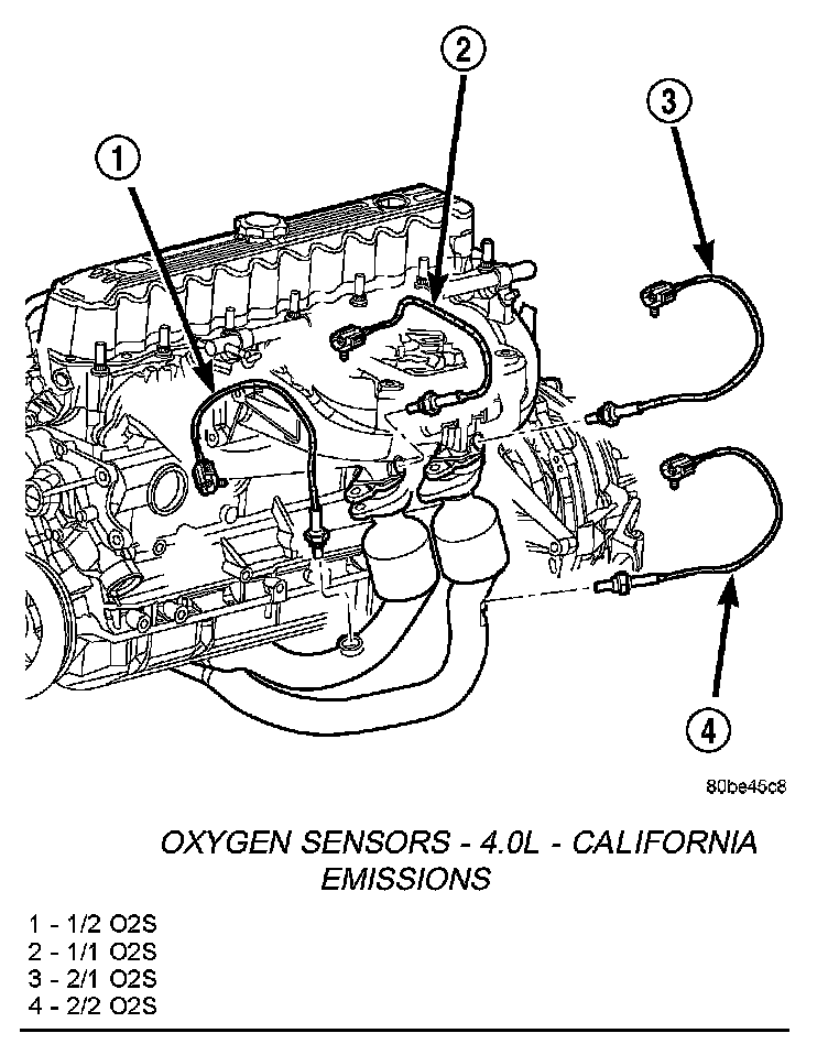 Oxygen Sensors - 4.0L California Emissions:
