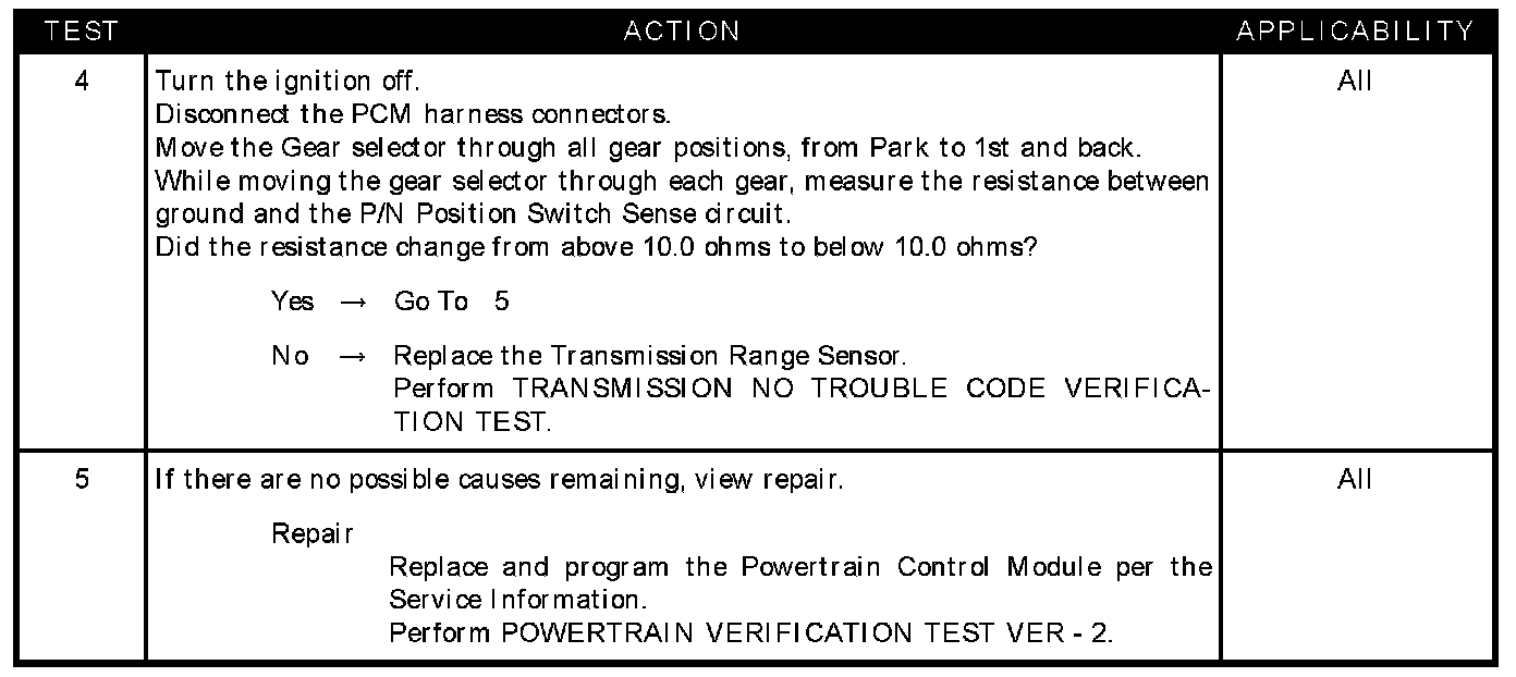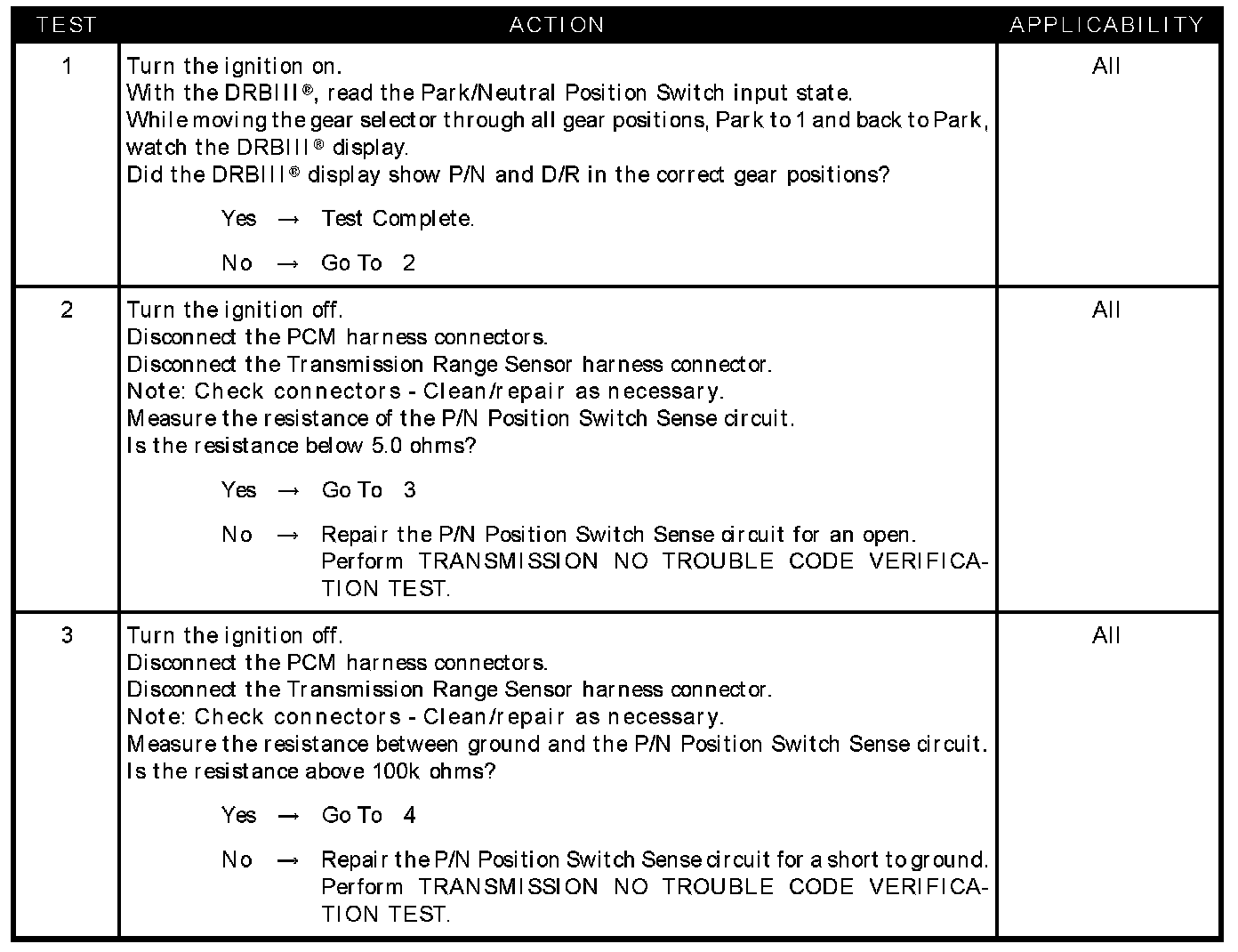 CHECKING PARK/NEUTRAL SWITCH OPERATION