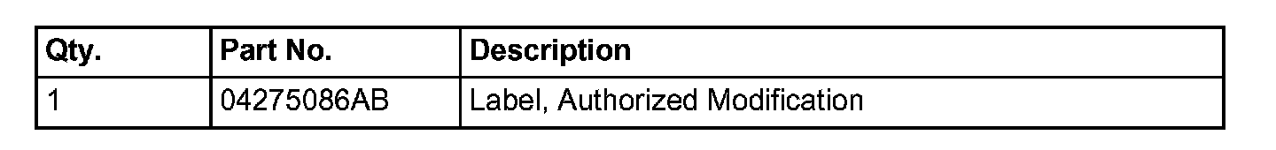 14. Type the necessary information on the "Authorized Modification Label" p/n 04275086AB and attach near the VECI label (Fig. 1).