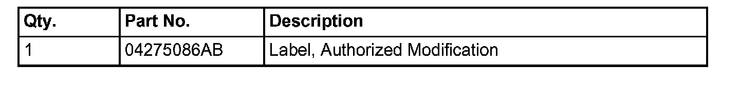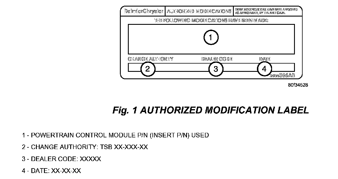 15. Type the necessary information on the "Authorized Modification Label" p/n 04275086AB and attach near the VECI label (Fig. 1).