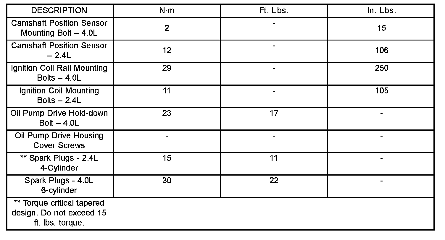 Specifications - Torque - Ignition - System: