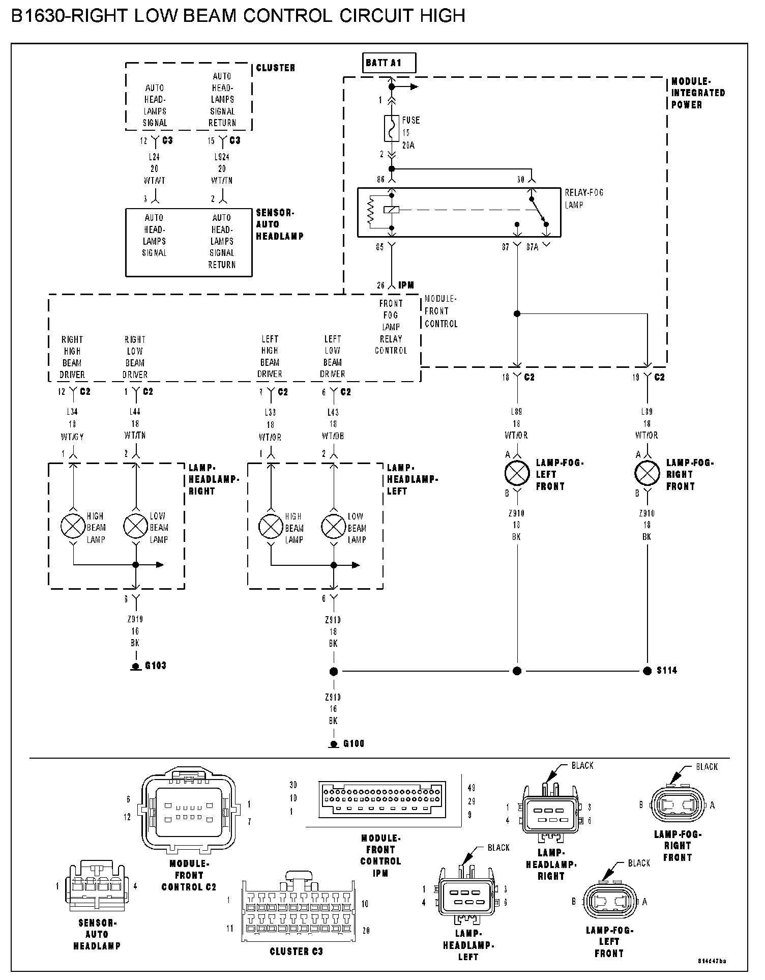 B1630-RIGHT LOW BEAM CONTROL CIRCUIT HIGHB1630-Right Low Beam Control Circuit High: