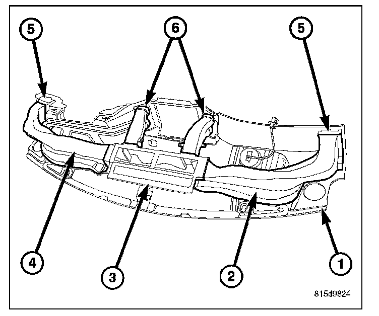5. Remove the screws that secure the center instrument panel ducts (6) to the instrument panel top cover.